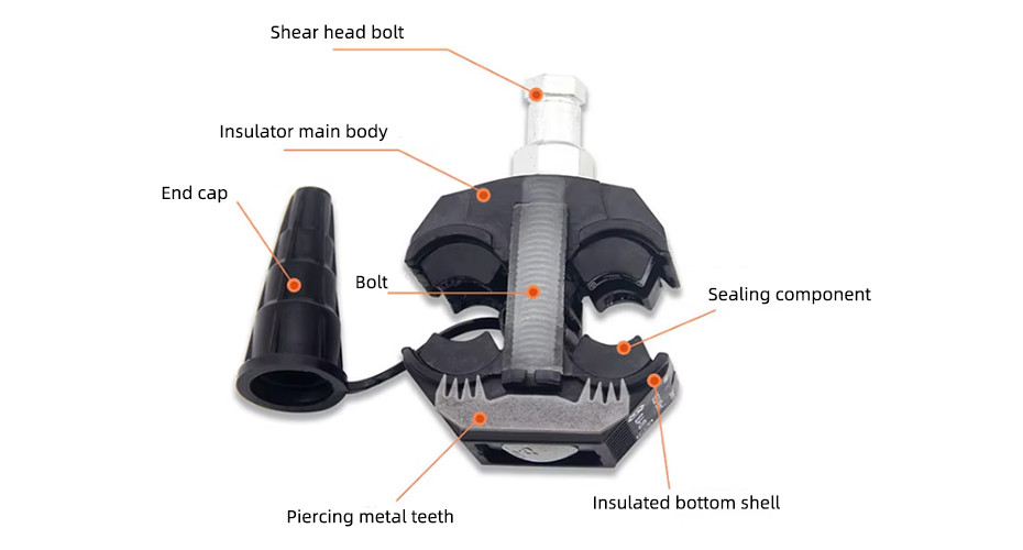 Bolts and clamping structures are used to apply pressure during installation; they are typically made of stainless steel or galvanized steel and are robust and durable. Tightening the bolts causes the metal teeth to pierce the insulation layer, and fix the cable.