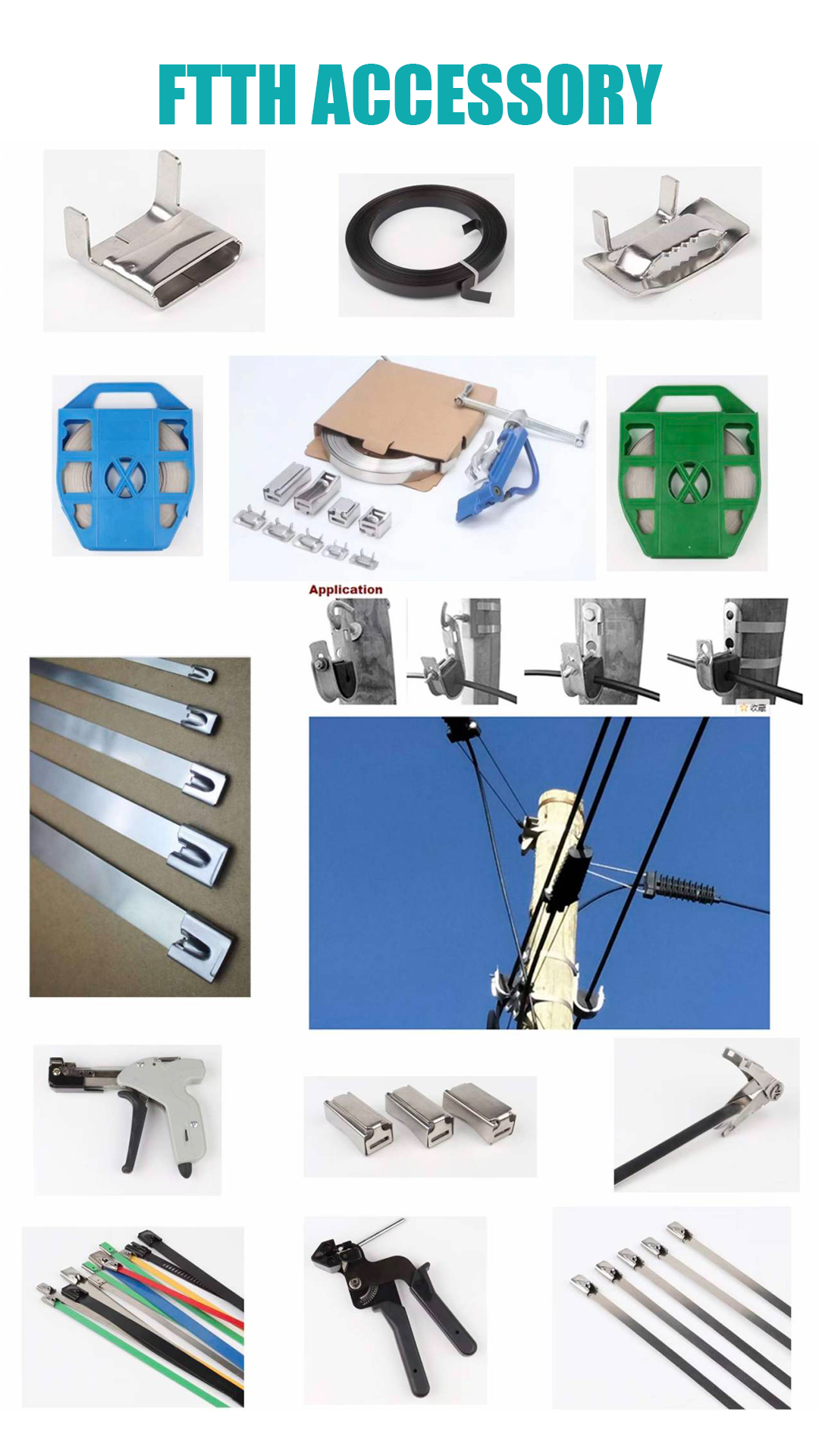 Stainless steel banding is also called stainless steel cable tie, It is a durable and corrosion-resistant banding tool. Its function is to fix some pole line hardware ( such as pole brackets, electrical cross arms, etc.) to the utility pole. It plays a key role in the construction of optical fiber networks and electrical transmission systems.