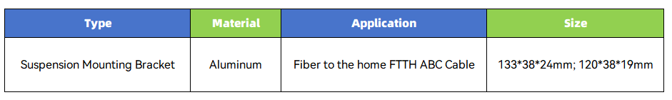 Aluminum cable suspension brackets are used to support and secure cable assemblies in overhead power line installations. These brackets are made of aluminum material for high strength, durability and strong corrosion resistance.