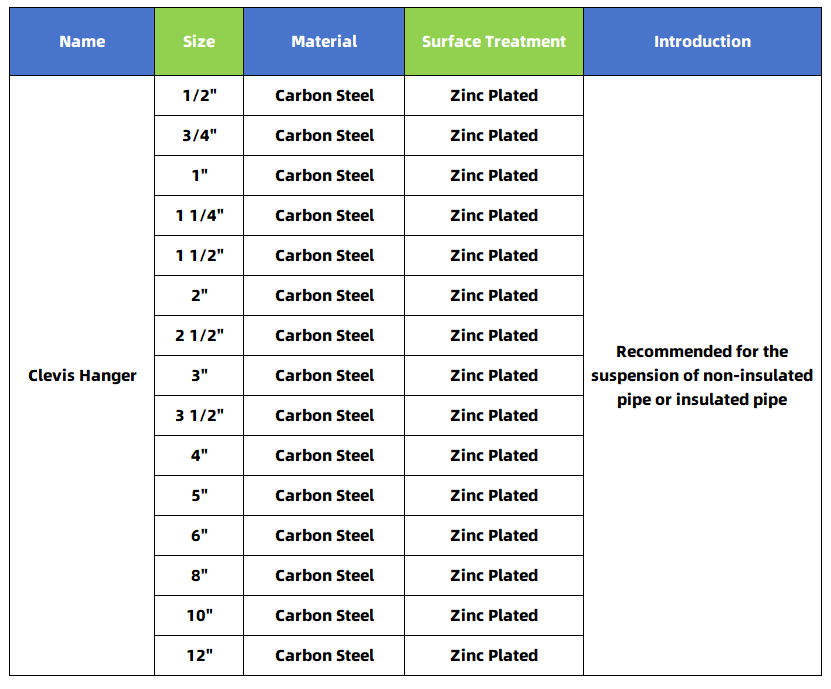 1.The clevis hanger can support the pipe at high temperatures and it has passed the high temperature test of 650°F (275°C). This means that it can support the pipe stably even at high temperatures.
