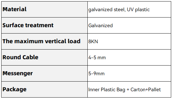 The suspension clamp is used to secure and connect cables, and is easy to use. Internal grooves increase friction between the clamp and the cable, preventing the cable from slipping.