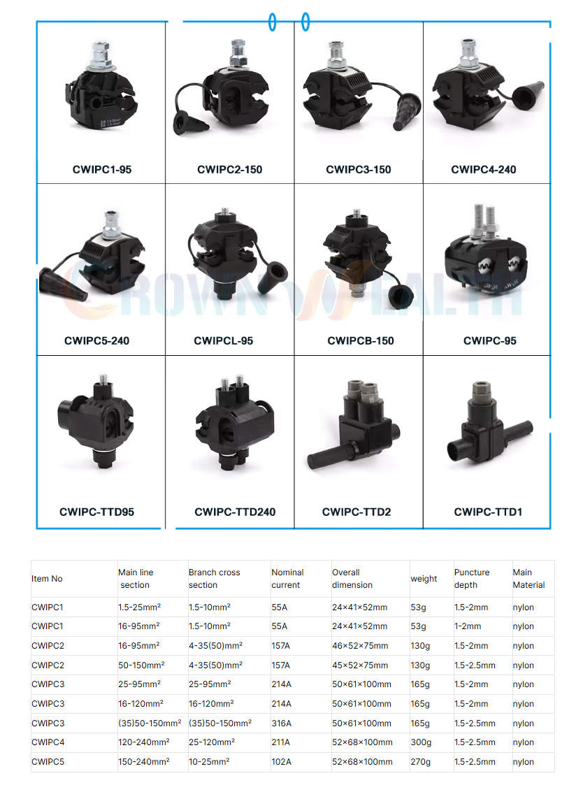 - CWIPC-TTD451: TTD 25-95 mm² ABC Electrical Cable Insulated Piercing Connectors