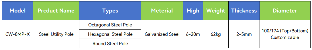 - CW-8MP-X: Steel Utility Pole | Octagonal Steel Pole | Galvanized Steel Utility Pole